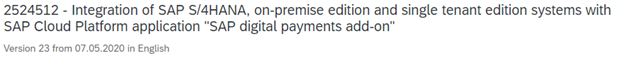 - The SAP S/4HANA on-premise or SAP S/4HANA Cloud system receives this transaction information from the SAP Cloud for customer payments.