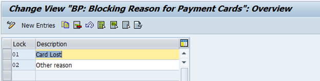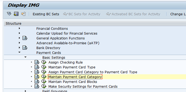 SPRO → Cross-Application Components → Payment Cards → Basic Settings → Maintain Payment Card Blocks