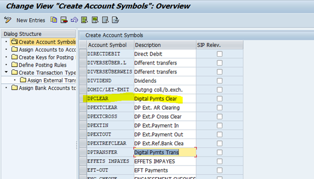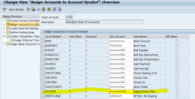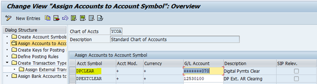 The clearing account of the payment service provider corresponds to the account symbol DPCLEAR.