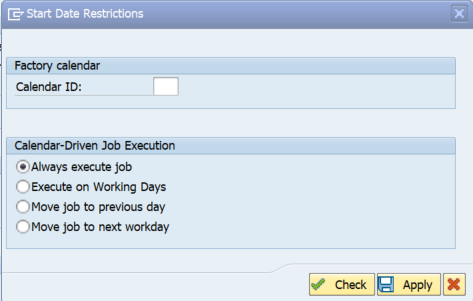 • Additional blue arrow – this allows you to set a factory calendar, workday and time under which to run the job.