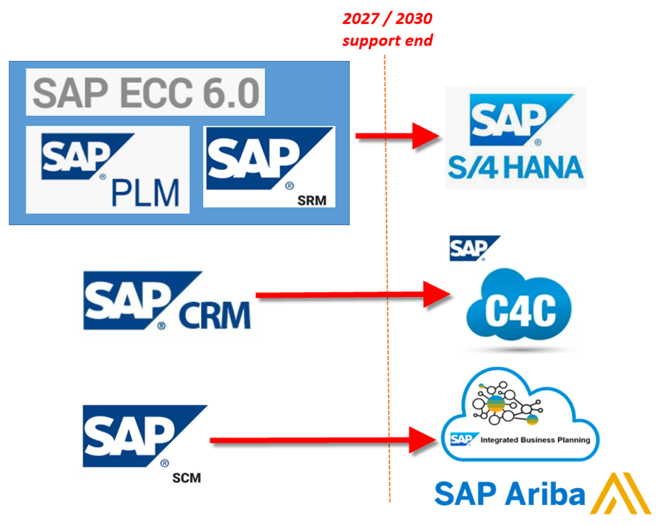 - SAP SCM 7.0 is replaced by SAP Ariba for collaboration with suppliers, as well as SAP Integrated Business Planning (IBP)