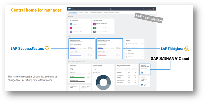 Similarly, in Exhibit - 8 below, the sample home page of a Manager shows information from Fieldglass, SuccessFactors, S/4HANA Cloud and so on.