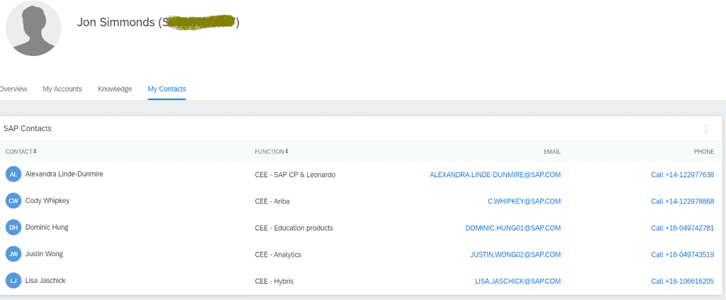 “My contacts” will show you the SAP contacts you deal with.