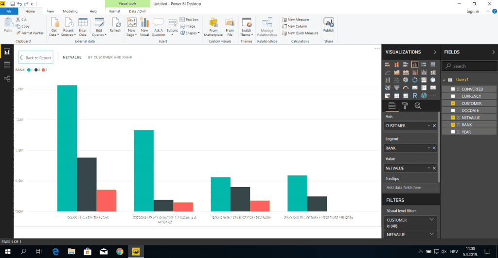 Our sales report returns the three greatest sales orders by net value for top ten customers in a particular planning group: