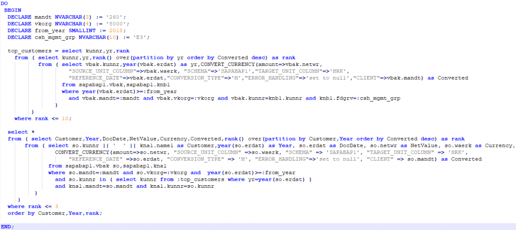 By using an anonymous SQLScript block, we can combine the power of SQLScript with "good old" ABAP/Java imperative development paradigm.