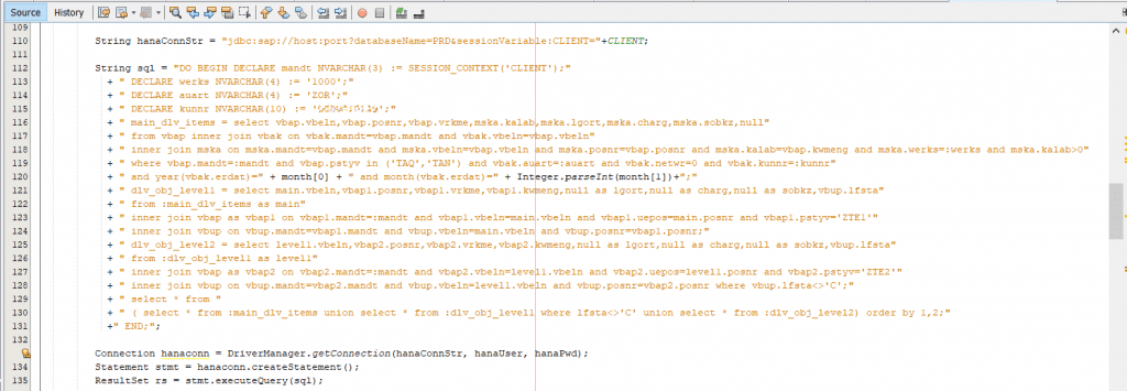 String hanaConnStr = “ jdbc:sap://host:port?databaseName=PRD&sessionVariable:CLIENT= ”+CLIENT;