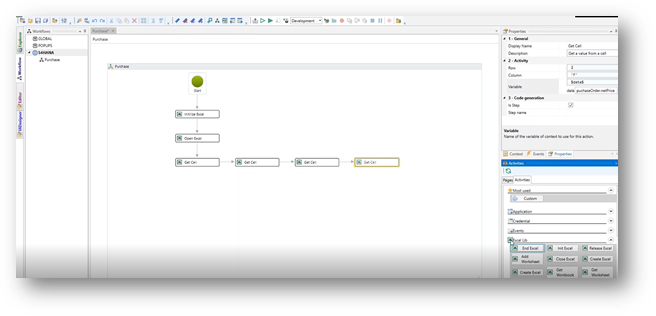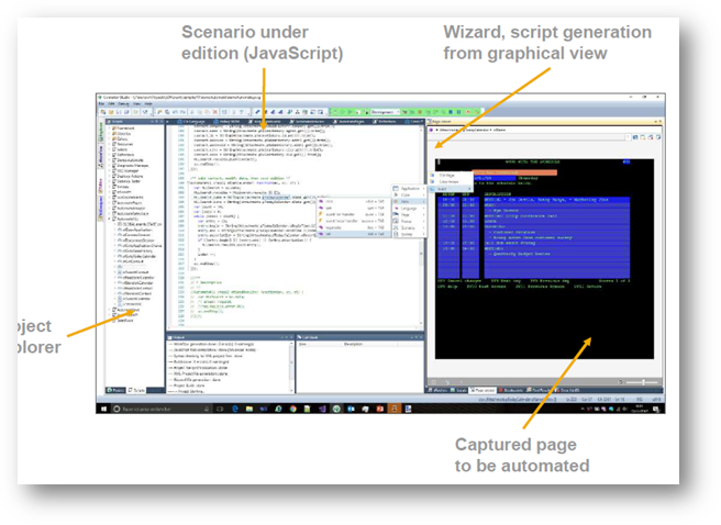 Workflow Designer: This tool is used to design the workflow. Once the application and its UI elements are captured in the application capture tool, they are available here in the workflow designer to tailor them into a process. It starts with a start workflow icon. By dragging and dropping the different screens, along with its captured elements, a process flow is built. The actions performed in the application screen are available as “activities” for dragging and dropping in the workflow designer. See the exhibit - 10 below for a sample screen shot of designer tool. Upon completing the process and saving, the java script code is generated at the click of a button.