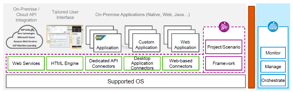 SAP Intelligent RPA is a single unified Cloud based solution. It includes “on-premise” automation tools as well. This is an end-to-end solution to automate steps. Most of us are familiar with “Macros and VBA Scripts” to automate certain tasks in Microsoft (MS) applications such as Excel. However, it can work only within the single application and cannot work across other Non-MS applications. This is where RPA overcomes such limitations. It can work with Non-SAP Systems and Legacy applications, as well as SAP’s solutions such as SAP Digital Core, Ariba, Concur etc.... In addition, RPA does not need any programming skills to build a “Bot”. See exhibit - 2 below to understand, how RPA integrates seamlessly across solutions.