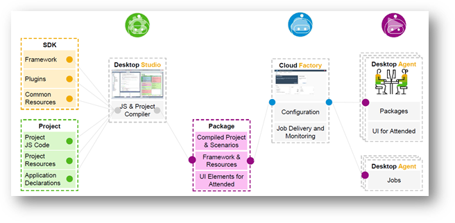 Desktop Studio is the component (we will go into more detal later in the blog) where the bots are developed. The desktop studio combines all the relevant information of a bot and delivers what is known as the “package”. This package needs to be imported into Cloud Factory.