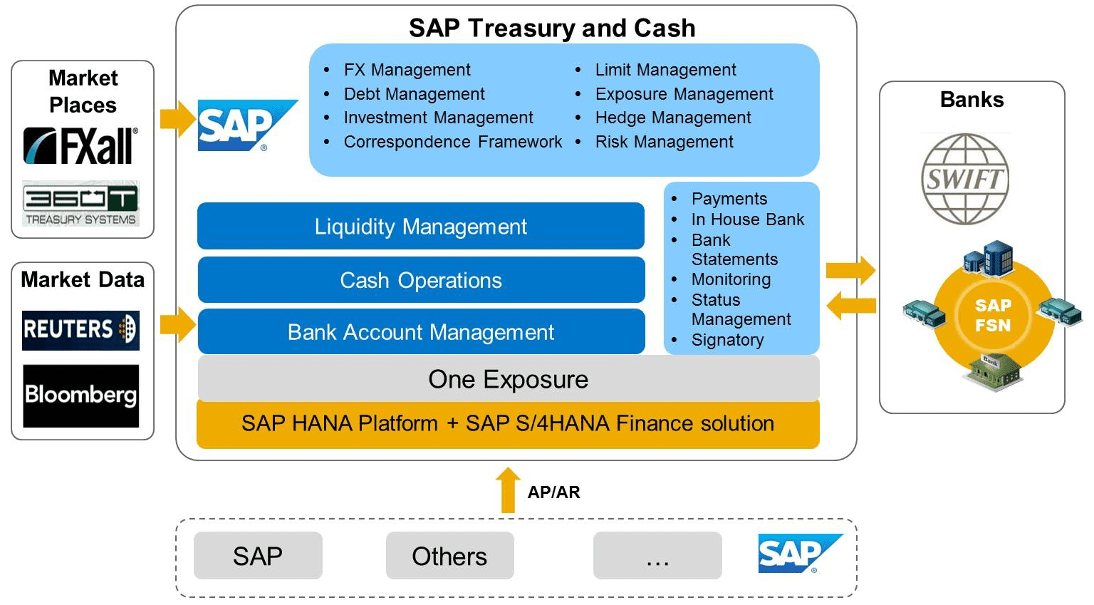 Cash Management is a key function in every organization for it to function efficiently. In a broader sense, maintaining appropriate bank accounts, collecting the receivables in time and planning & release of cash for payables in a timely manner, are all part of the Cash Management function. In many unoptimized organizations, tools such as spreadsheets are extensively used to perform Cash Management Functions. SAP has built an Integrated Treasury and Cash Management solution on the S/4HANA Platform. Refer the exhibit - 1 below for a broad overview.