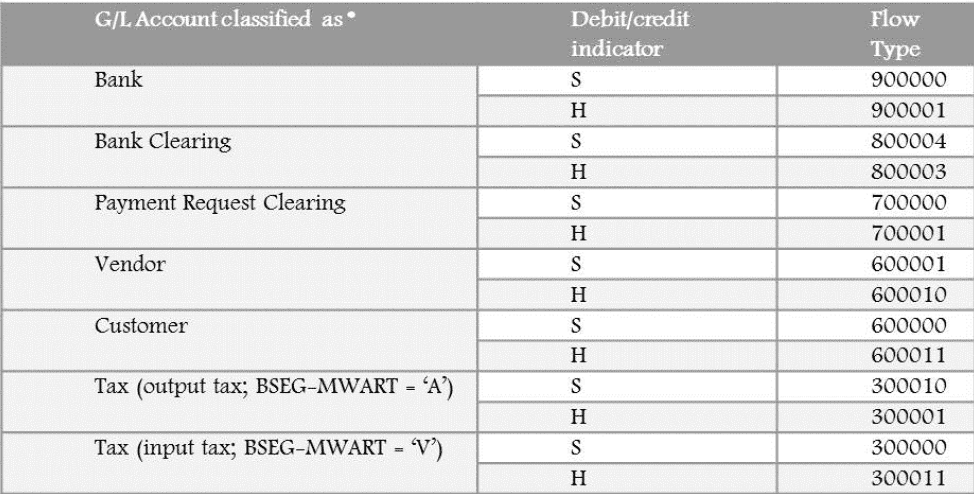 SAP has “Pre-defined” a derivation logic to assign a flow type to BSEG records. This is shown below.