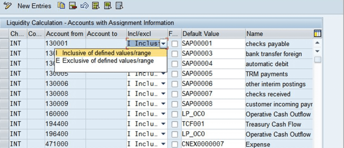 There is also a provision to assign, “default liquidity item assignment” for GL accounts. You can see the node relevant to this in the exhibit – 8 above. It should be noted that the derivation logic by query and query sequence has a higher priority than the default liquidity item assignment for GL accounts. A sample screen shot of the customizing screen for default liquidity item assignment is shown in exhibit - 9 below.