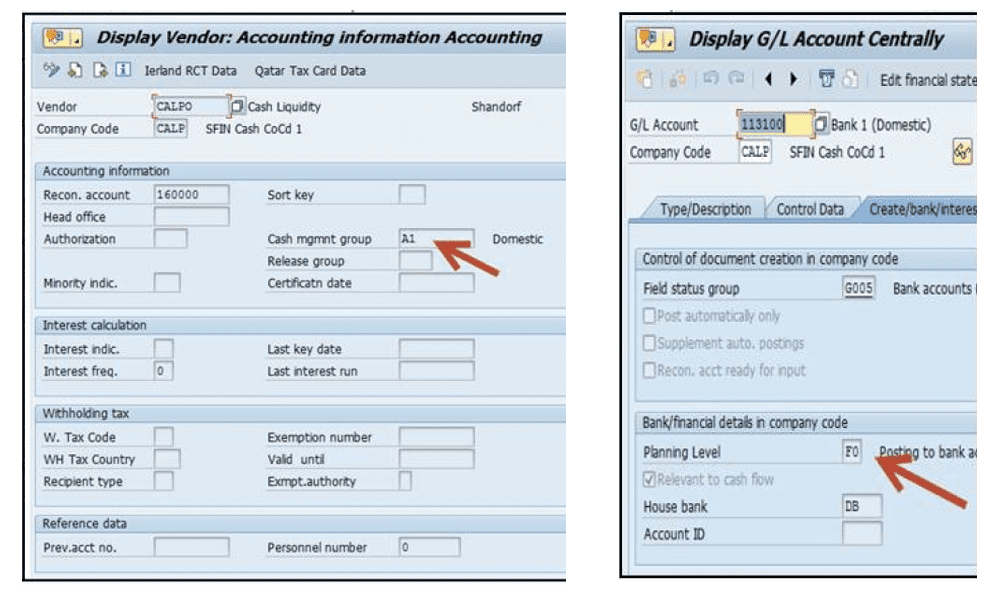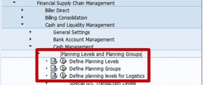 In order to ensure that other components work in tandem with Cash Management, it is mandatory to define and assign Planning Levels and Groups. Calculation of Planning Dates is an important component while aggregating data for cash management from different modules such as FI, AR, AP, etc… Based on these assignments, the Planning Date is calculated and stored in a specific field (FDTAG) in GL documents. You can also specify the Planning Level of the Bank Account Balance data uploaded through excel, in the IMG node Financial Supply Chain Management > Cash and Liquidity Management > Cash Management > Flow types > Assign Planning levels to Flow types. A screen shot of IMG node for customizing Planning Levels and planning data in GL and Vendor accounts is provided in exhibit - 10 and exhibit - 11 below.