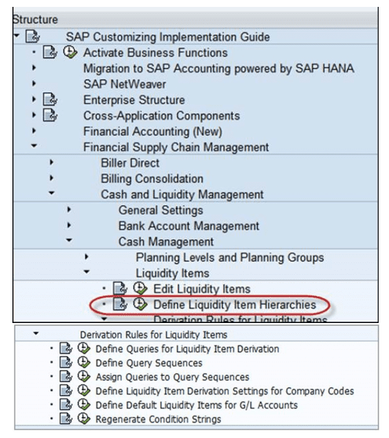 Liquidity items are typically structured in a Liquidity Item Hierarchy. It is also possible to “derive” the Liquidity Item based on custom built query and sequencing them appropriately. The sequence of steps would be as follows: