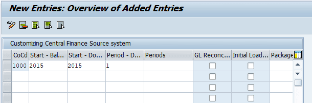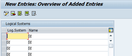 In this configuration screen, define one logical system for each connected source system client and one logical system for the target CFIN client.