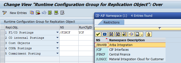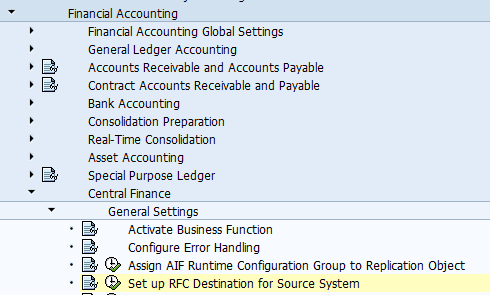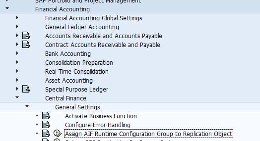 In this Configuration step, define Application Interface Framework runtime configuration groups that you will be using to process data replicated to the Central Finance.