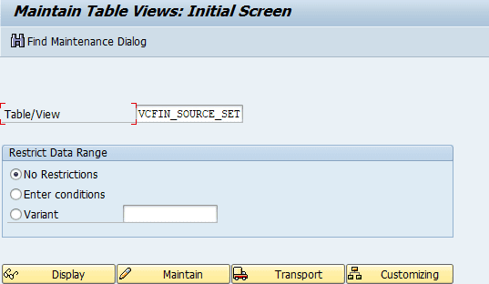 Or Transaction SM30 : Table/View : VCFIN_SOURCE_SET