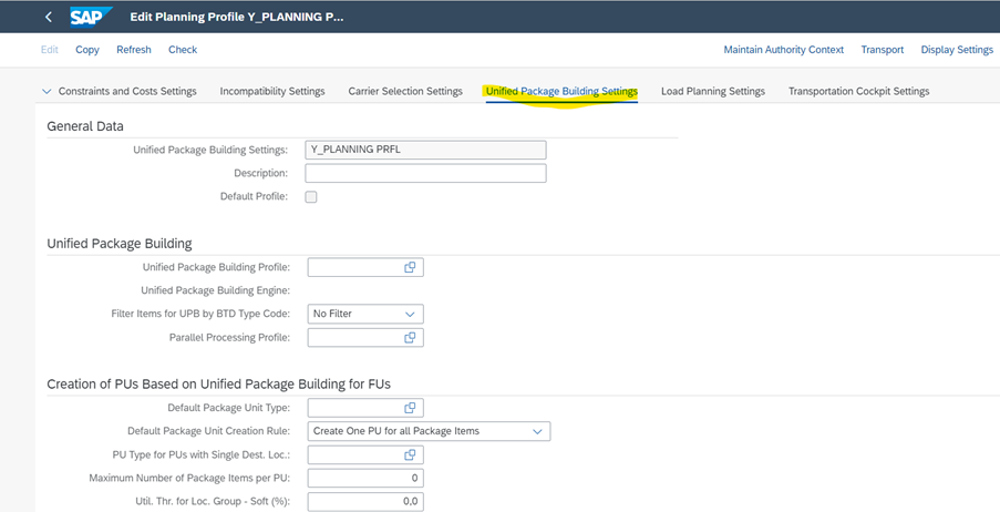 16) Transportation Cockpit Settings New Sub-Profile of Planning Profile
