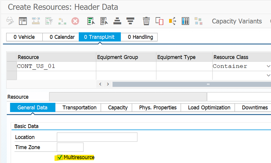 In the earlier version there was no indicator to mark and differentiate between single and multiple containers in resource master data. However, in the latest version SAP has provided the indicator –“Multiresource” in resource master for resource type - container to differentiate between single and multi-resource, and during VSR/manual planning the multiresource indicator functionality is considered. However, the recommendation is that for both vehicle and container resource, the multiresource flag should be explicitly specified. Further, the multiresource indicator will also help in the load consolidation run functionality. As well as this, the scenario builder tool also considers the multiresource flag of container resource.