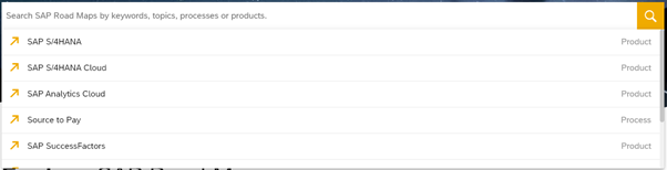 By clicking in the search field, SAP offers you a list of products to search their road maps for – as below: