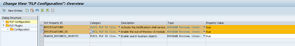5. Add “NOTIFICATIONS” and “NOTIFICATIONS_UI” in the FLP Property ID field, as below. The Property Value field should be set to “true”:
