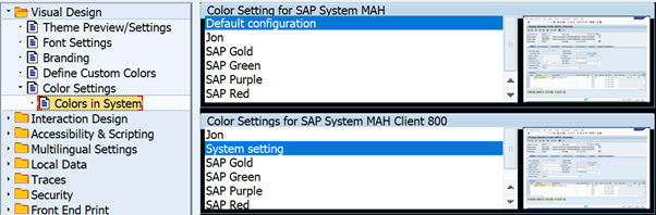 Here you can set a colour setting for all your SAP sessions. Or alternatively, you can select the specific client you wish to change the colour for. In my instance, I will change the colour setting for MAH Client 800 to saved colour setting “Jon”.