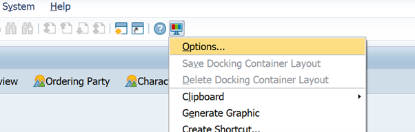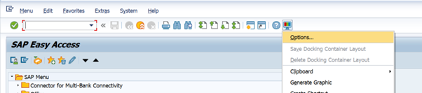 To make these changes, firstly open the “Options” menu in your SAP GUI: