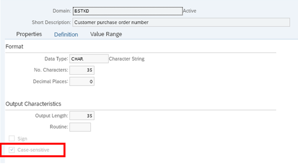 It’s useful sometimes to know if a field in SAP is case sensitive, especially when coding.