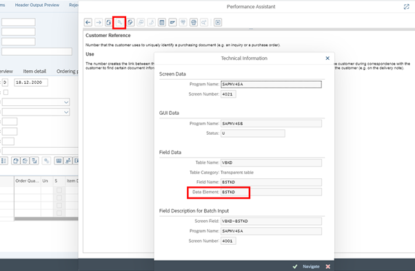 Example screenshots below show for the Customer Reference field in VA01.