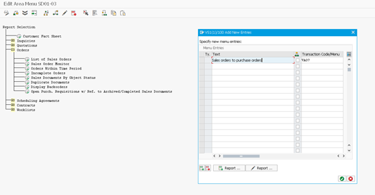 For example, as below to add transaction VA07 with a custom text, to the menu path: