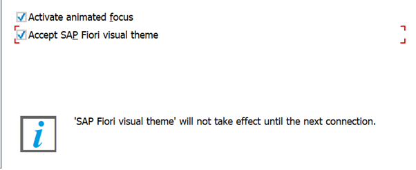By clicking the “Accept SAP Fiori visual theme” you will activate the Fiori look in your GUI. You will need to restart your SAP GUI for it to take effect.