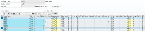 Note that all types of table are included in the results, including transparent tables and structures, as shown in the screenshot below where VBBE (transparent table) and VBDPA (structure) are highlighted.