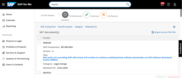 This opens in the SAP For Me browser, so you have all the functionality of marking each one as not relevant or confirmed, to show you have addressed them.