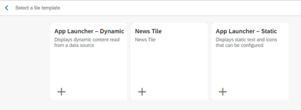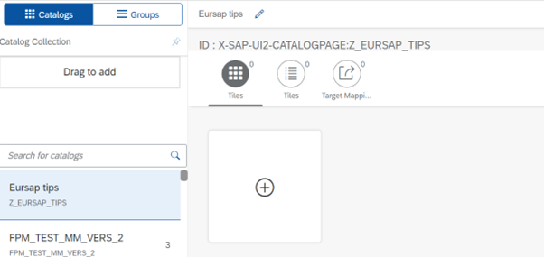 6. Now you can add apps to the catalog by clicking the plus icon under the tab “Tiles” for your catalog.