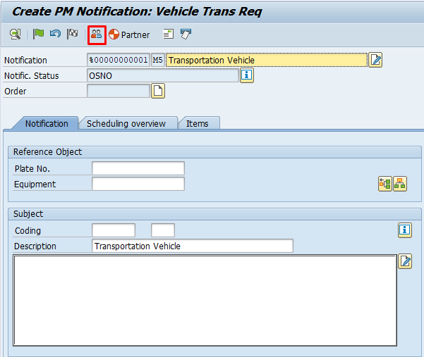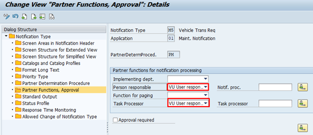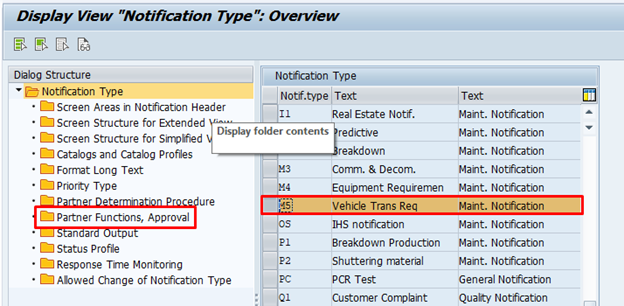 Select the notification type and click in ‘Partner functions, Approval’.