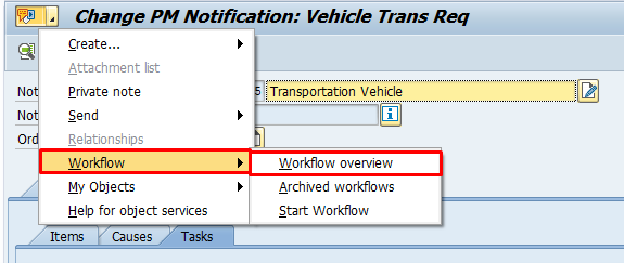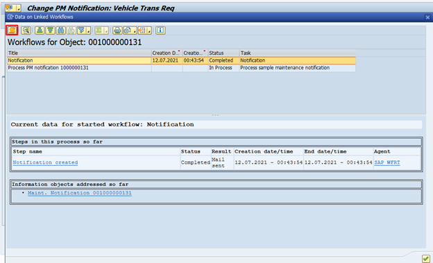and select the maintenance notification to display the workflow log.