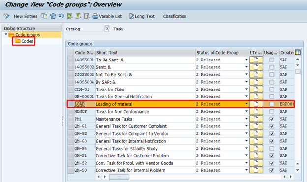 Select the Code Group and click on Codes.