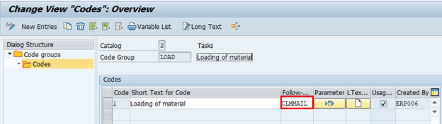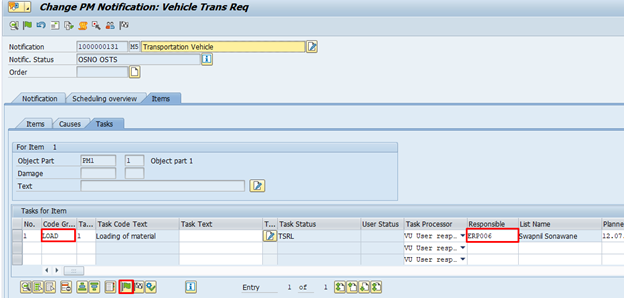 Mention the code group for which the follow-up action is defined and mention the person responsible for the task as the SAP ID, and release the task then save the notification.