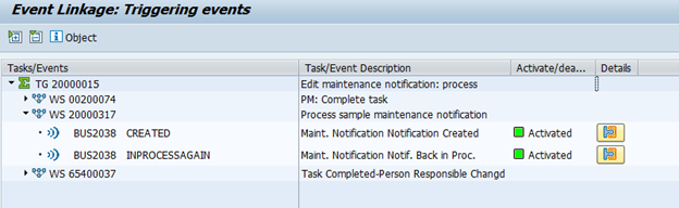 Click on Activate Event Linking to activate the event of workflow. This will trigger the email after creation of maintenance notification.
