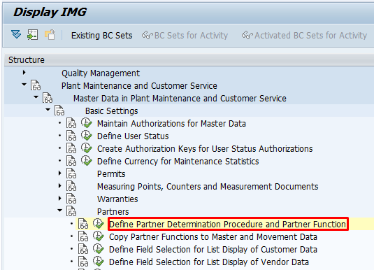 Click on ‘Define Partner Determination Procedure and Partner Function’ to make the partner field mandatory in the notification.