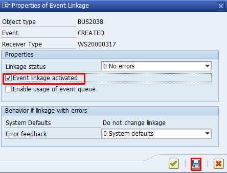 Select Event Linkage activated and click on save to activate the workflow and click on to save the changes in the transport request.