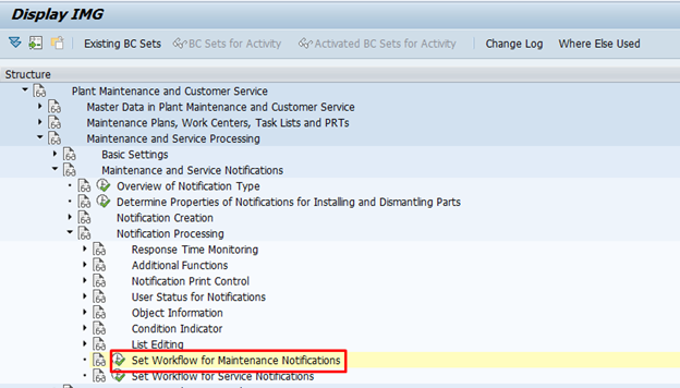 Select Set Workflow for Maintenance Notifications to activate the workflow.