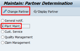 Select Plant maintenance and click on change Partner
