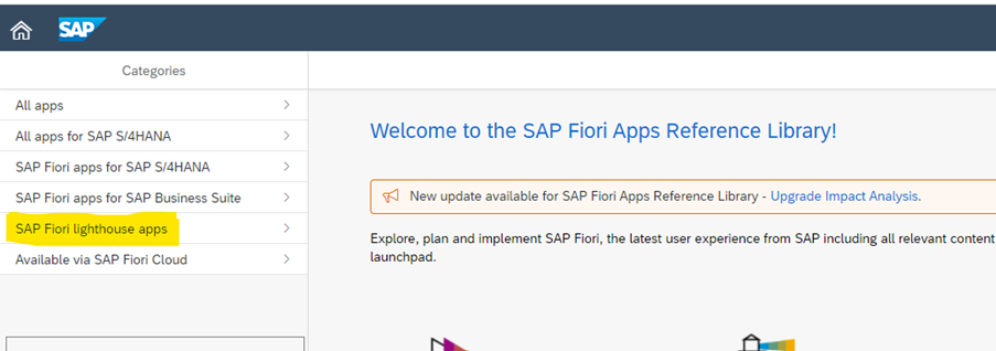 One of the options in the Fiori Apps Library is to view the SAP Fiori Lighthouse Apps.