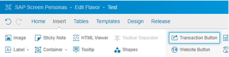 I will also create a “Create material” button to launch MM01 by clicking on the Transaction Button option from the Insert menu tab.