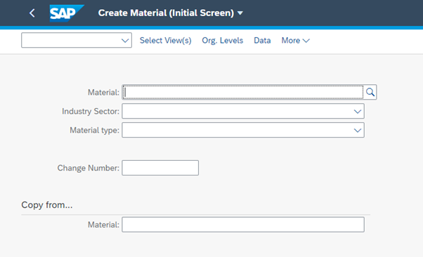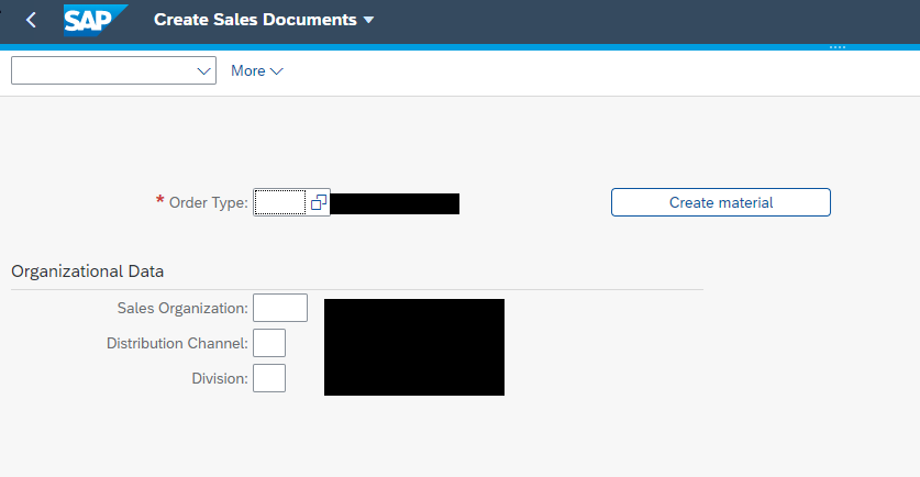 As you can see, the sales group and sales office are now invisible, and I have my button to create a material on the screen too. Clicking this button opens transaction MM01.