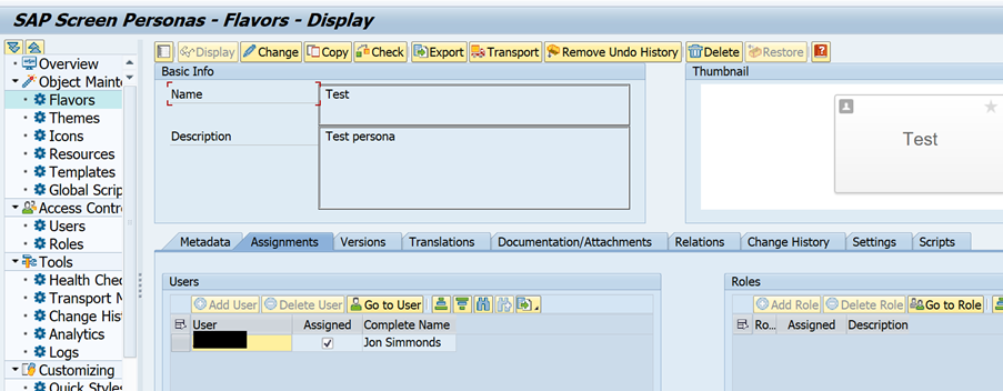 To be able to use Screen Personas as an administrator and create your own flavours, you will need certain authorisations. There are standard roles for administration of Screen Personas: