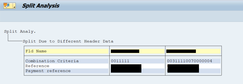 The system will then show you the fields in the header of the billing document which are different in each document and have therefore caused a split (as you cannot have different values in one field of the header in one document).
