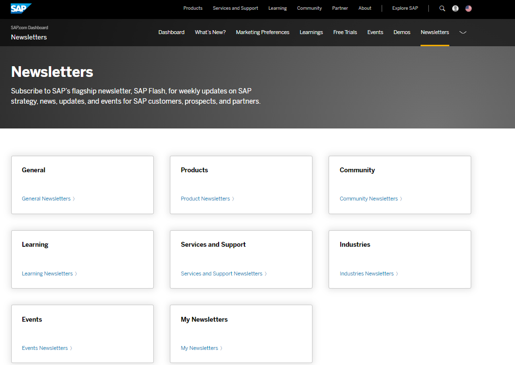 The link to the newsletters is here: https://www.sap.com/dashboard/newsletters.html