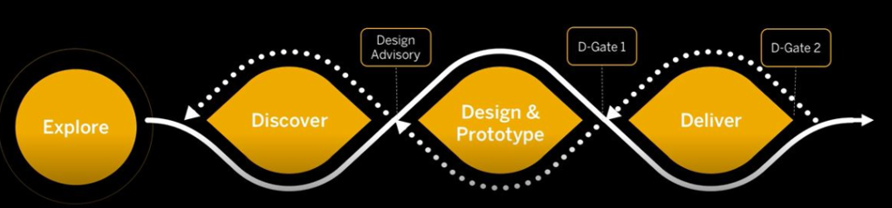 The phases of a Leonardo Design Led Thinking project can be identified in the below SAP provided diagram:
